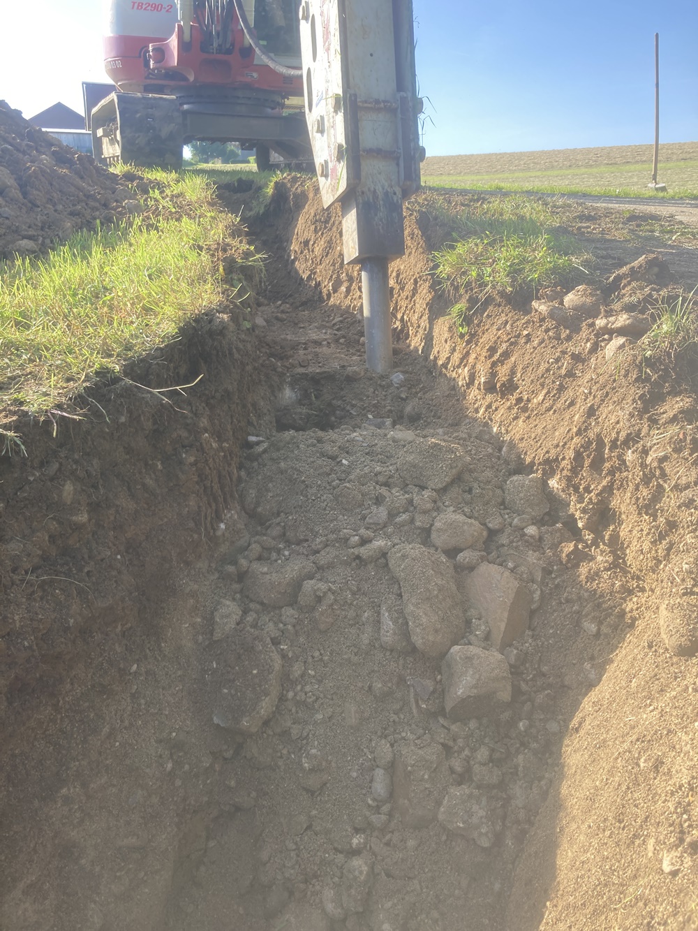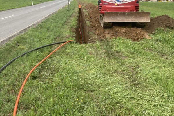 Ob Strom, Wasser, Gas, Telekommunikation oder Fernwärme – eine zuverlässige Infrastruktur beginnt mit professionellem Leitungs- und Kabelbau. Wir übernehmen sämtliche Arbeiten von der Planung über den Aushub bis zur fachgerechten Verlegung der Leitungen. Dabei legen wir größten Wert auf eine saubere und ordentliche Ausführung sowie eine gepflegte Baustelle.
